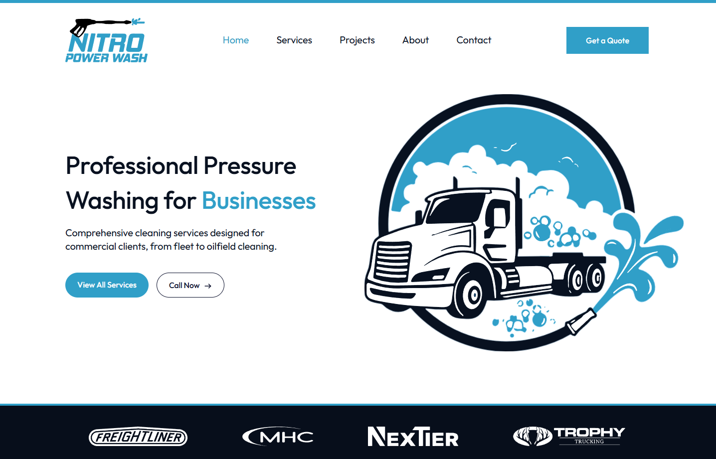 The owner of Nitro Powerwash was operating for quite a while with a website he had built himself using a "premium" online service. After getting 0 leads from his  efforts, he reached out to us for a complete overhaul. Without even being on a plan that offers our monthly SEO services, Nitro is now generating multiple leads and sales per week for their services.