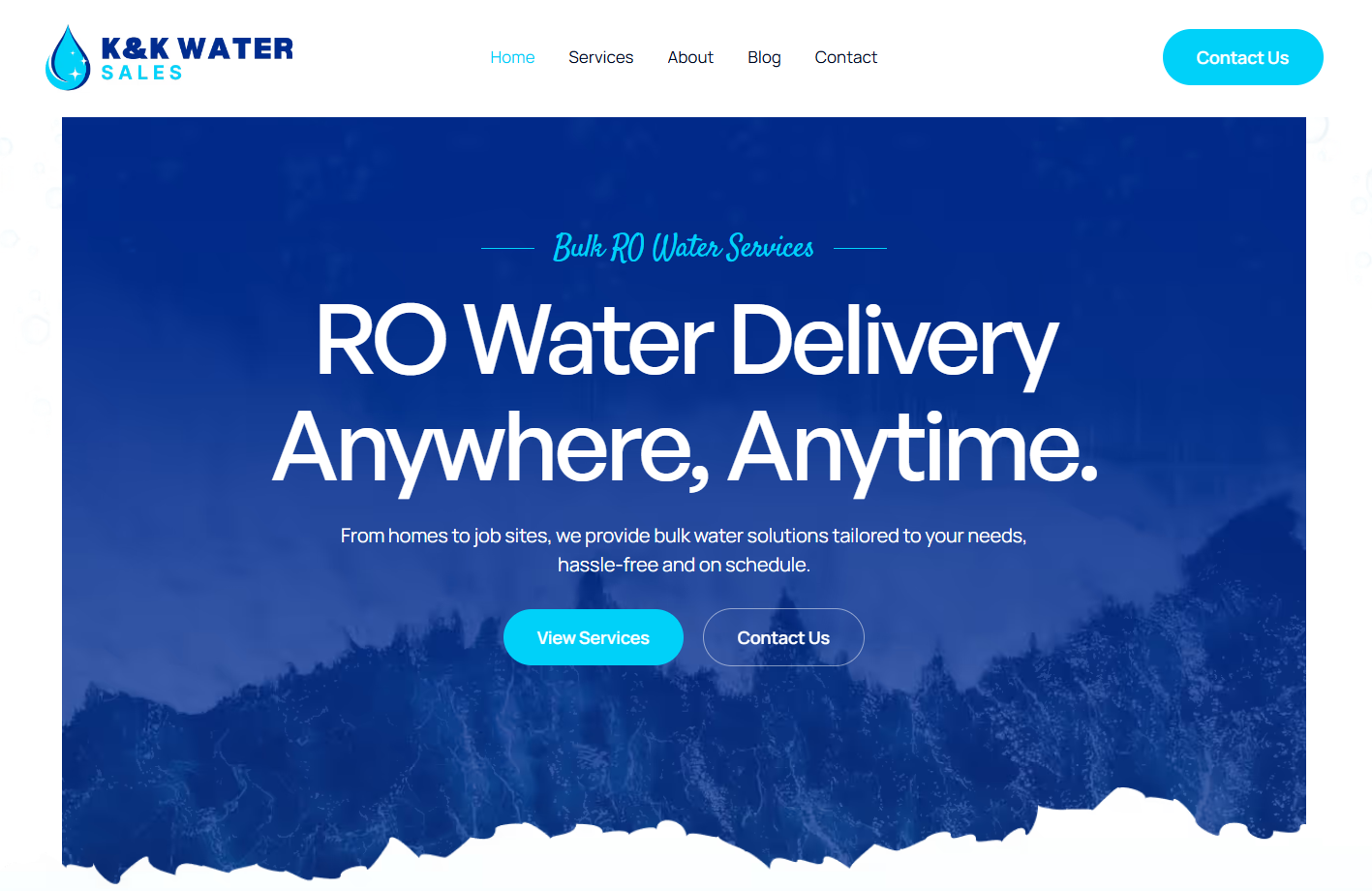K&K Water Sales was operating for years without a website and finally decided to upgrade. After getting us to create their new website and Google Business profile, they're now fighting for rank #1 for their highest priority keywords only a few months after launch (although this is in due to their own efforts as well following our advice on what they can do to help themselves further).